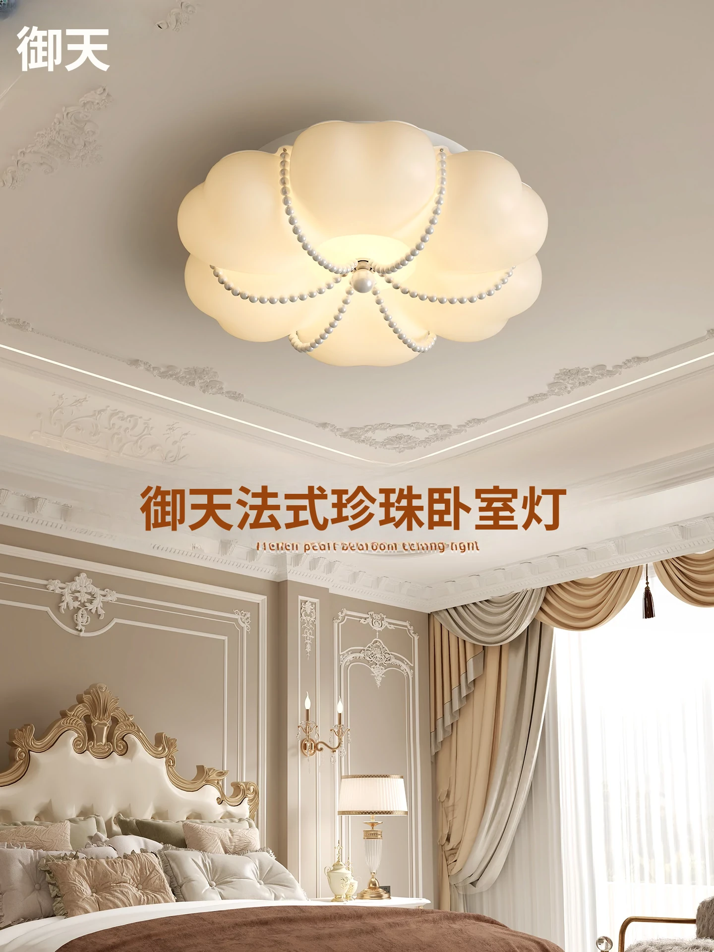 御天フレンチシック主寝室ライト - 宋代美学のレトロな布製、心温まるロマンティックなデザインで目に優しい、理想的なベッドルーム照明。
