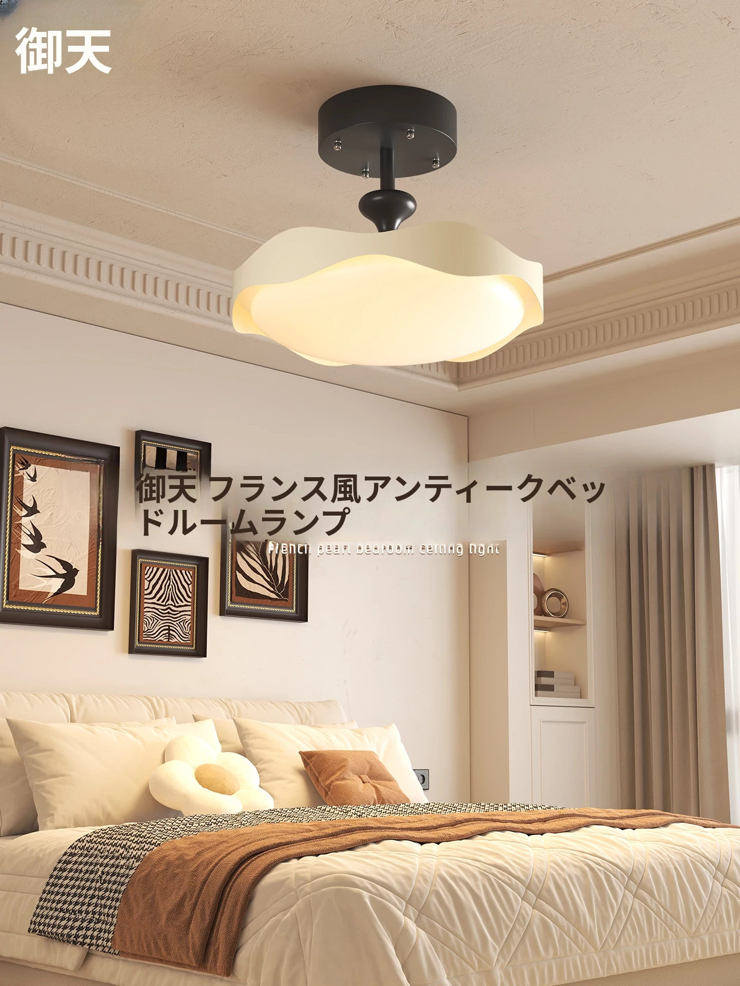 フレンチスタイルの優しい光、御天クリーム風天井ライト!目に優しい全光 spectrum 照明、心温まる書斎や寝室にぴったりなクリエイティブなデザイン。あなたの空間を特別に演出します!