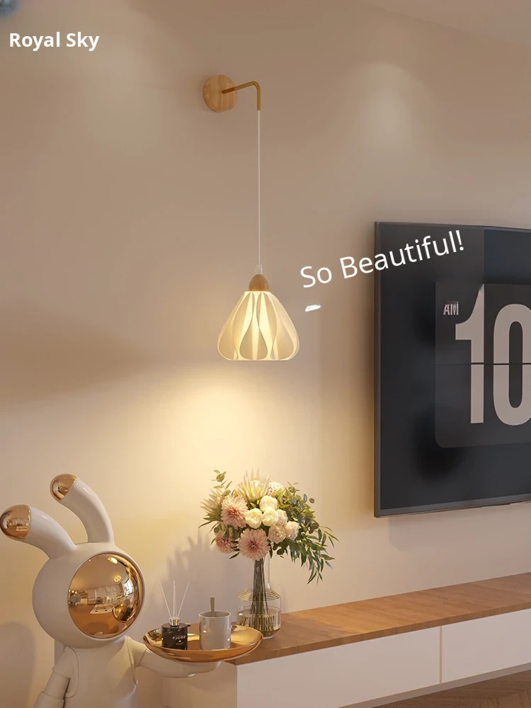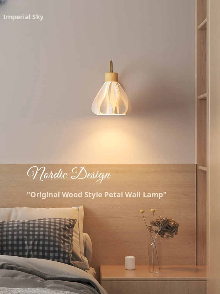 Petal Cream Wooden Wall Lamp - Perfect for Bedroom, Reading Nook, Living Room Accent, Background Wall Decor, Balcony, Staircase, and Hallway Lighting. Elevate Your Space with a Touch of Elegance!