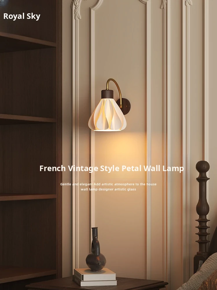 Vintage Walnut French Cream Bedside Wall Lamp - Eye-Caring Design for Bedroom, Stylish Lighting for Staircase and Living Room Accent Wall