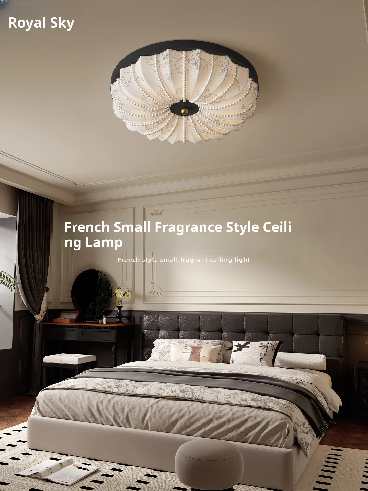 French Chic Main Bedroom Light - Vintage Aesthetic from the Song Dynasty, Cozy and Romantic Fabric Design, Eye-Caring Illumination for Your Bedroom