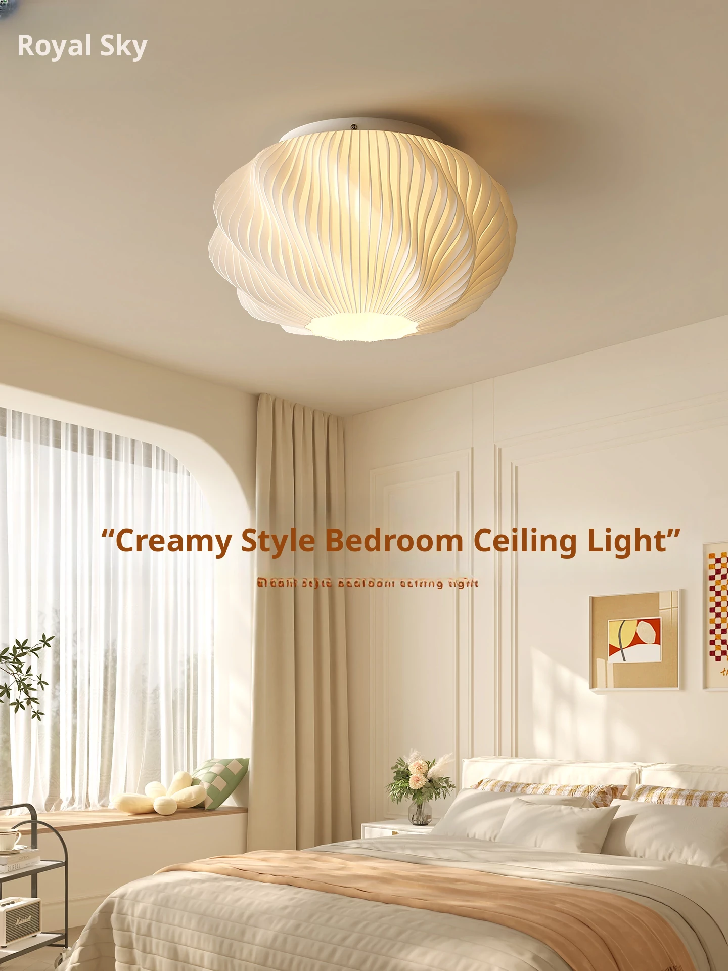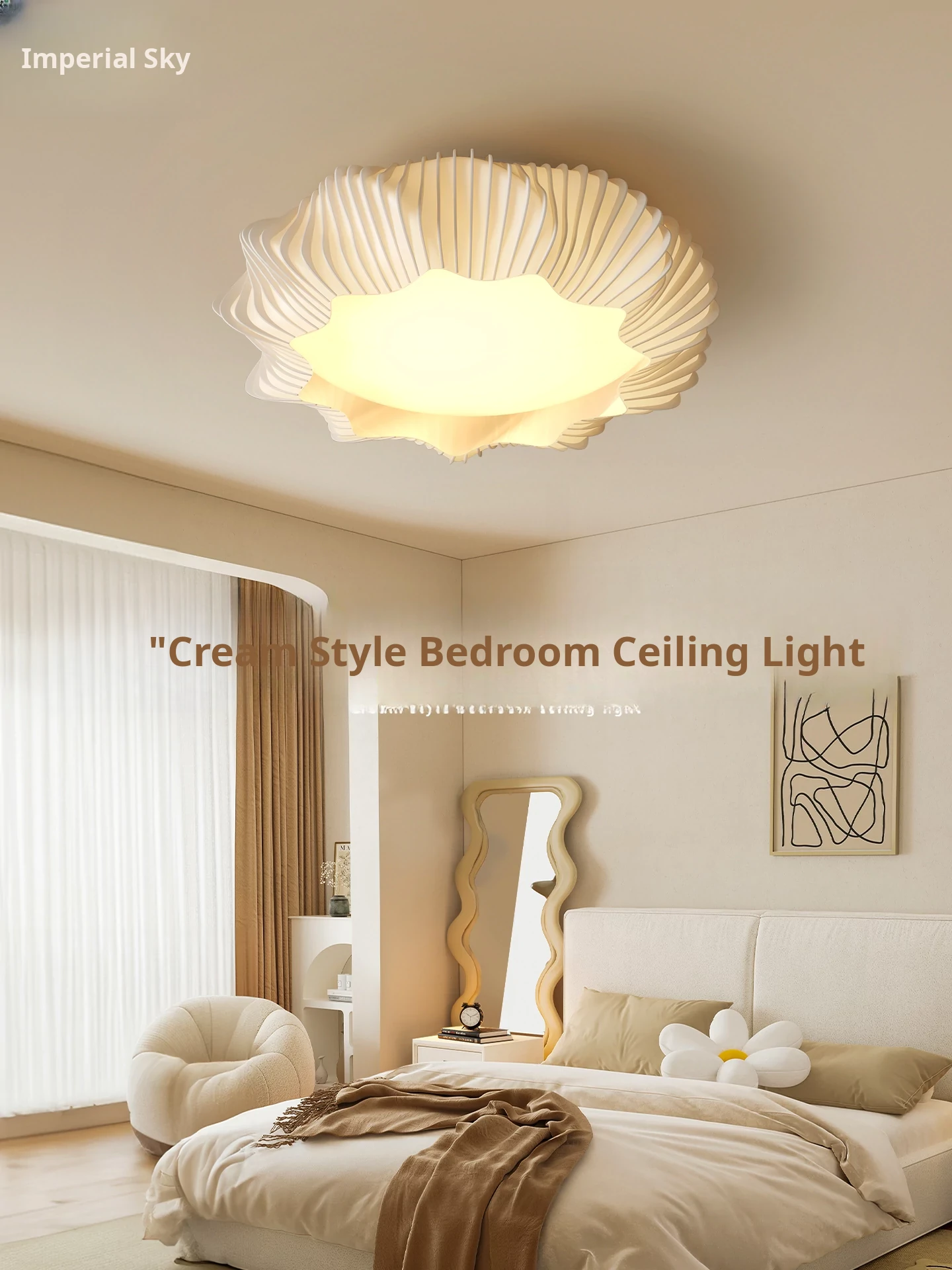Elegant Modern Art Cream Ceiling Light for Master Bedroom - Minimalist Design, All-Spectrum Eye-Caring Lighting for Children's Study Room