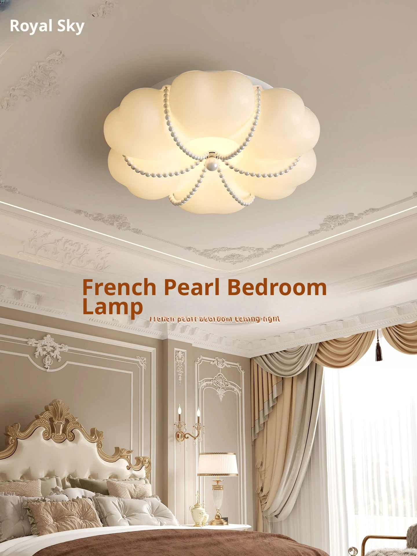 Yutian New French Pearl Ceiling Light - Creative Floral Design, Creamy Atmosphere Lamp for Master Bedroom and Study, Eye-Caring Illumination