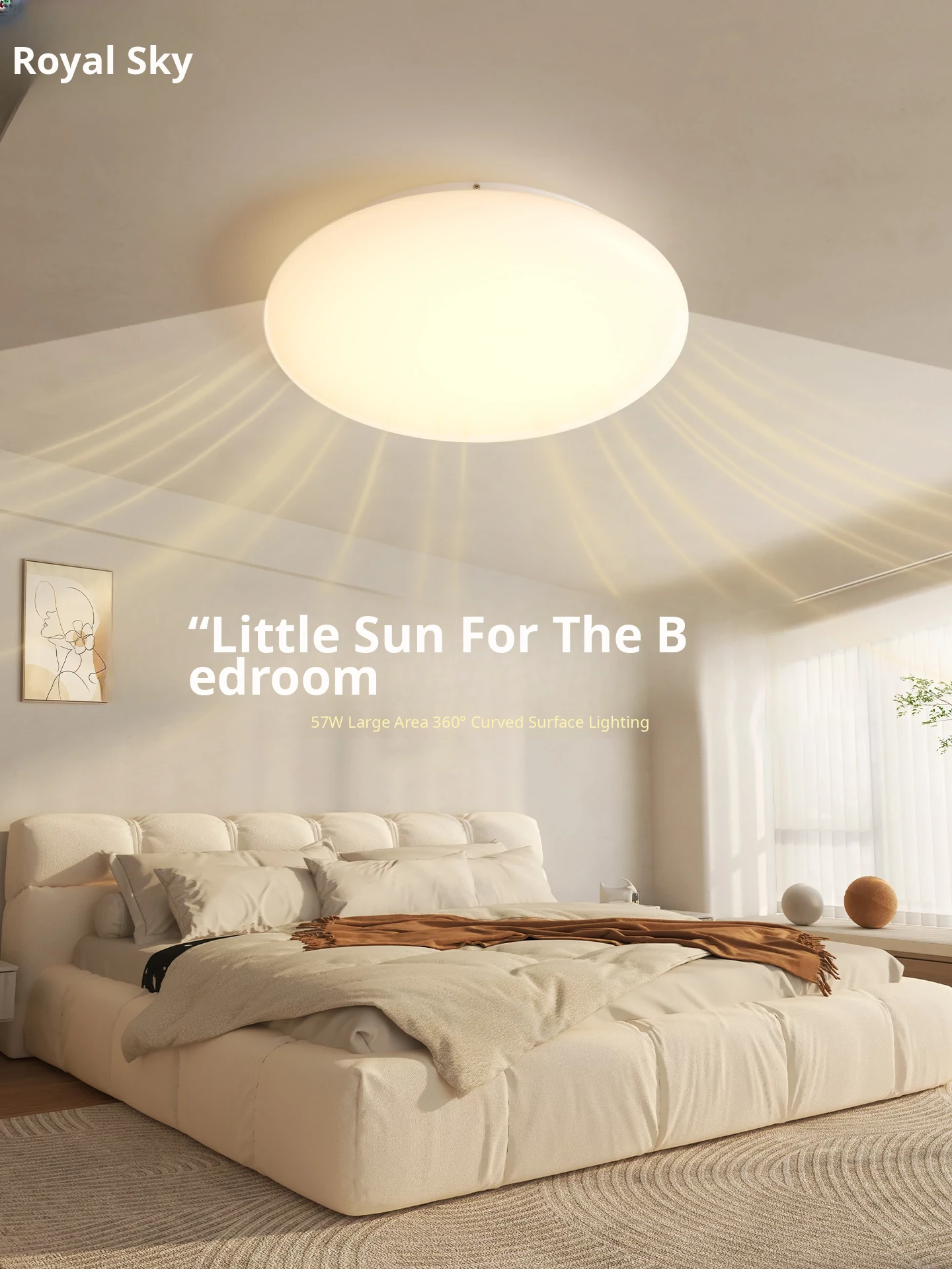 Modern Minimalist Round LED Ceiling Light - Full Spectrum Eye-Caring Sunlight for Bedroom, Dining Room, and Study Room